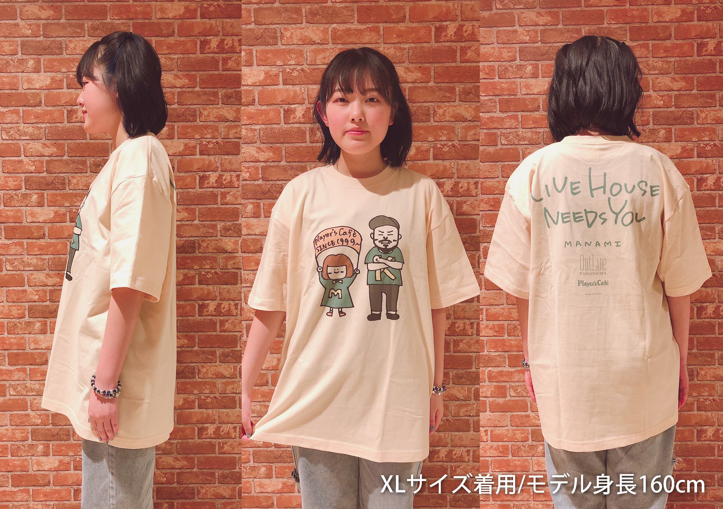 Tシャツに福島アウトライン or Player's Cafeにて使用可能なドリンクチケット1枚付(期限無し、ぜひご来場の際ご使用ください)。